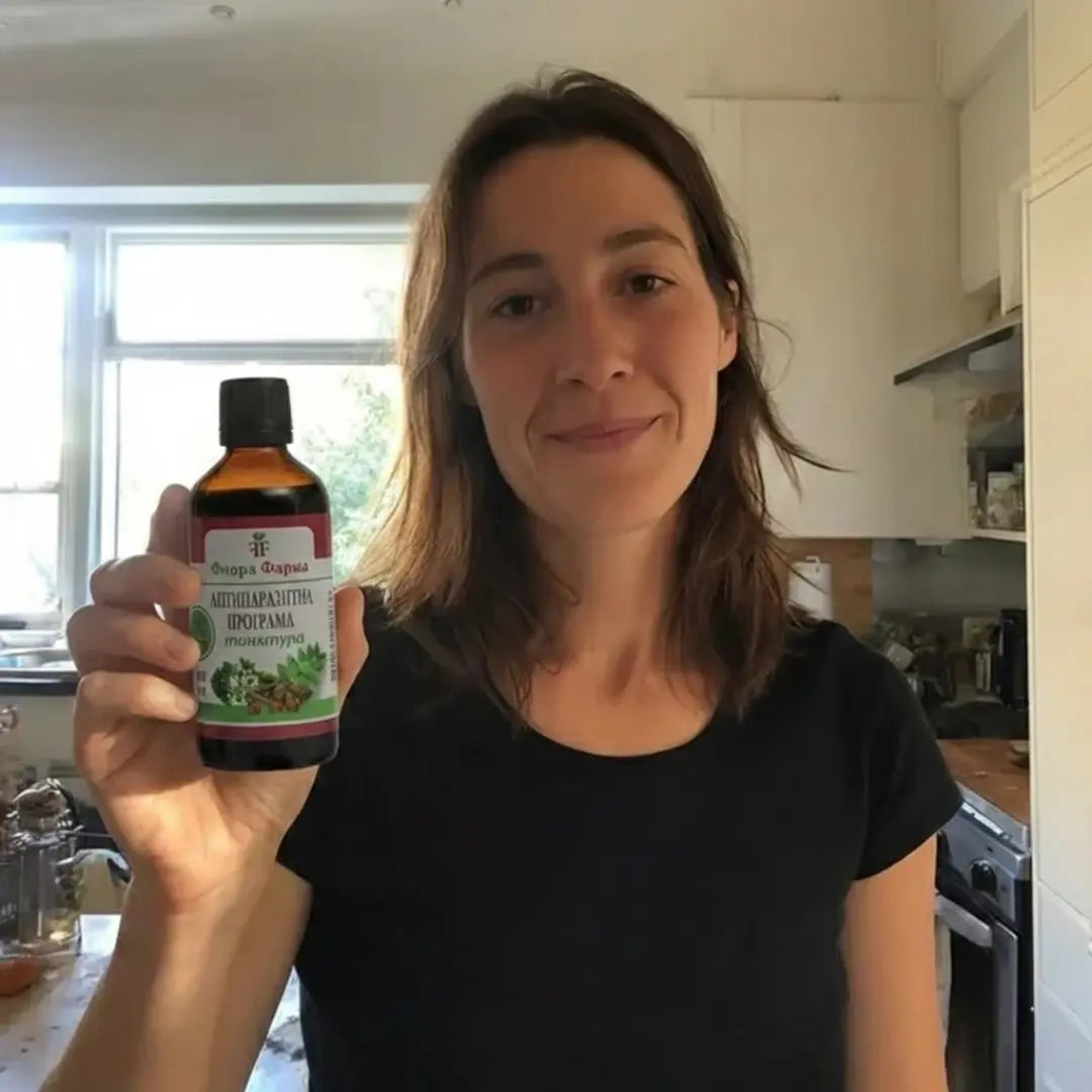 Mă simțeam constant obosită și grea — chiar și după 8 ore de somn. Aveam mereu stomacul umflat. Pofta mea de dulciuri era incontrolabilă. Mintea mea era mereu încețoșată și pielea mea nu era niciodată curată. Medicii spuneau: „E stresul”, „E vârsta”. Am dat întâmplător peste tinctură și am decis să o încerc. Eram sceptică, dar după doar 2 săptămâni am simțit o diferență; se pare că paraziții erau într-adevăr cauza problemelor mele.