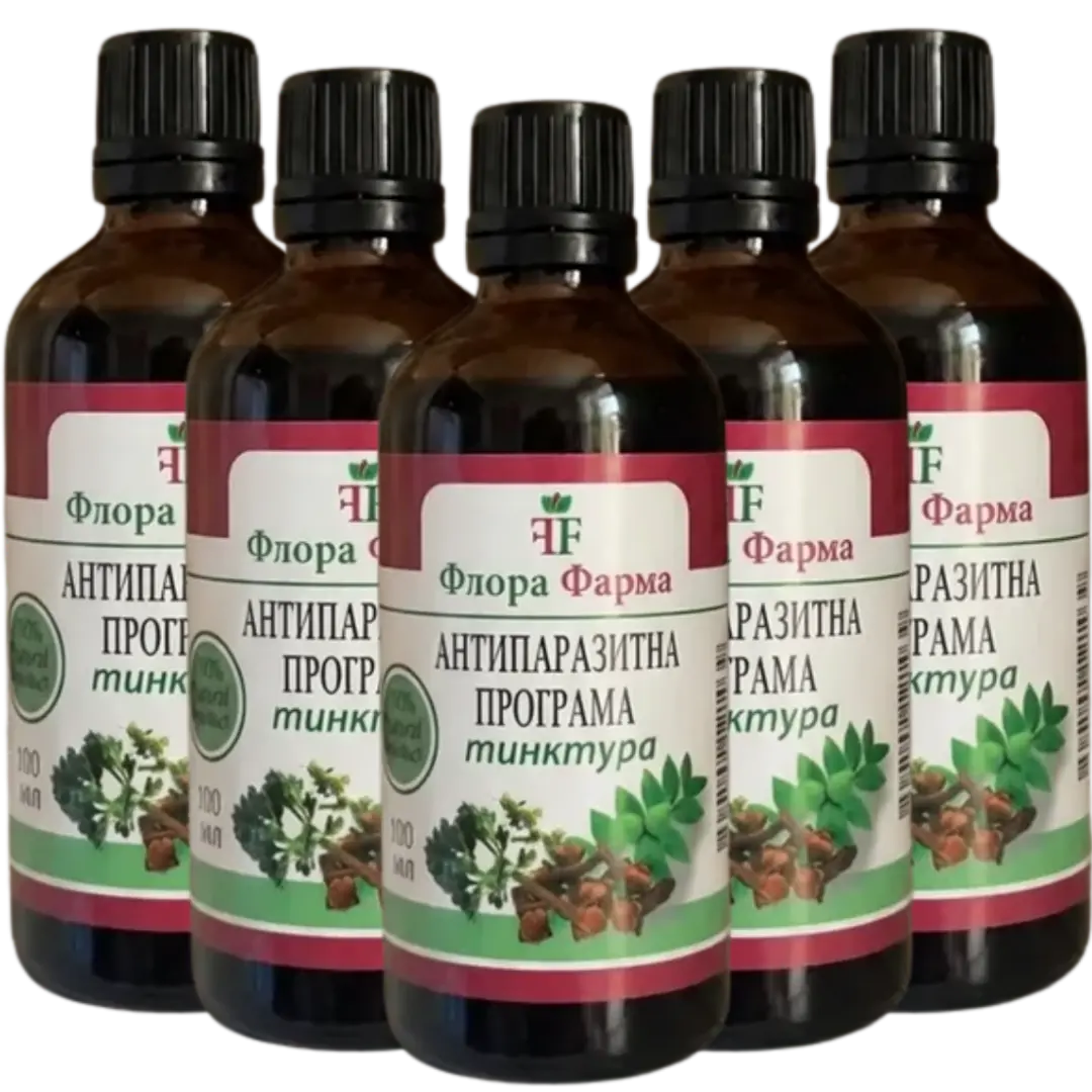 Tinctura „Programul Antiparazitar” combină o formulă inovatoare din 5 plante puternice, cu proprietăți dovedite — pelinul dulce, nucul verde, cuișoarele, neem-ul și rădăcina de brusture. Acestea distrug paraziții în toate stadiile de dezvoltare, elimină toxinele și restabilesc echilibrul organismului — totul pe cale naturală.